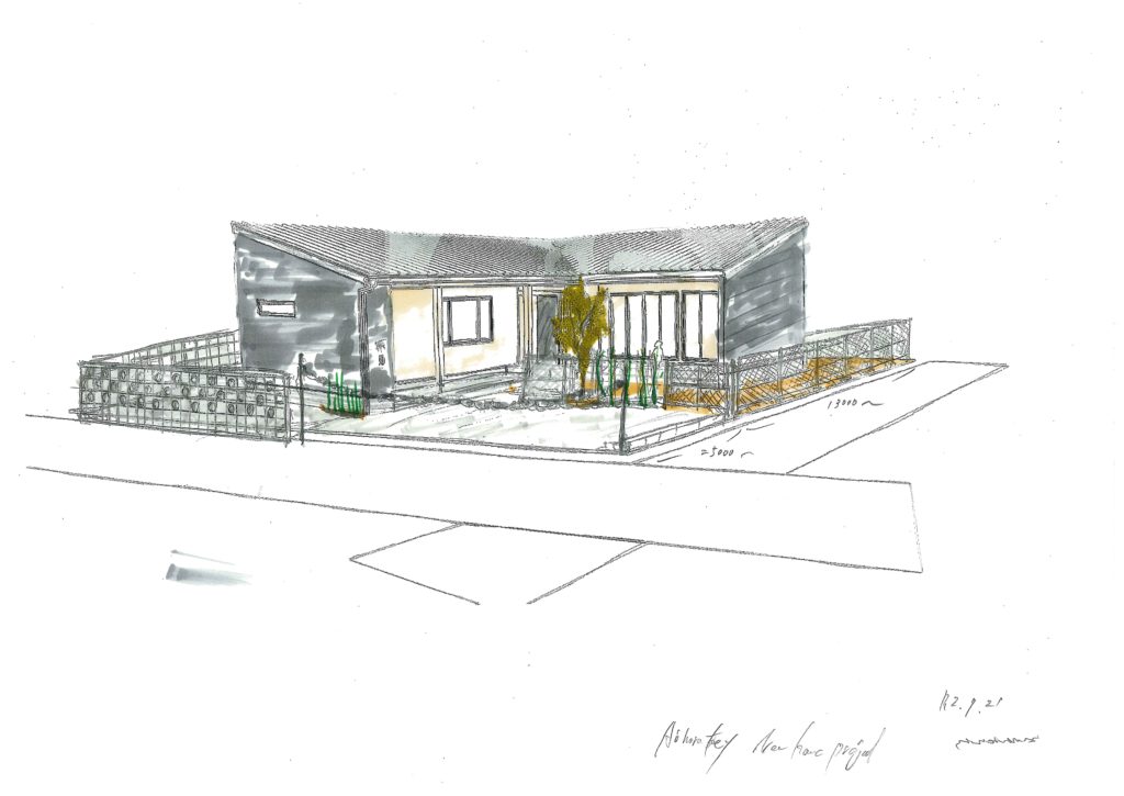 平屋のこだわりの沢山つまったおうちがもうすぐ完成します。 エクステリアのご提案中です。
